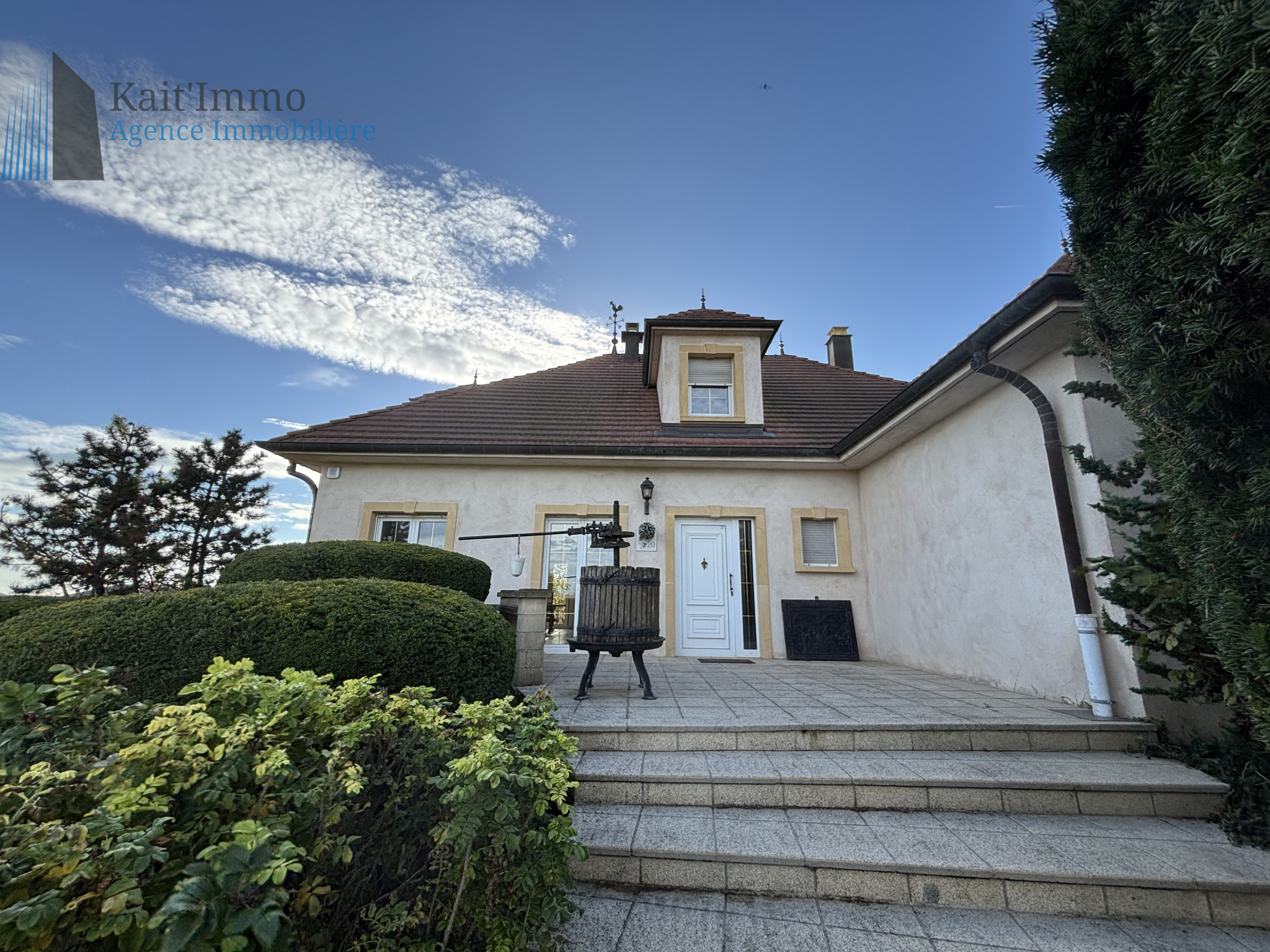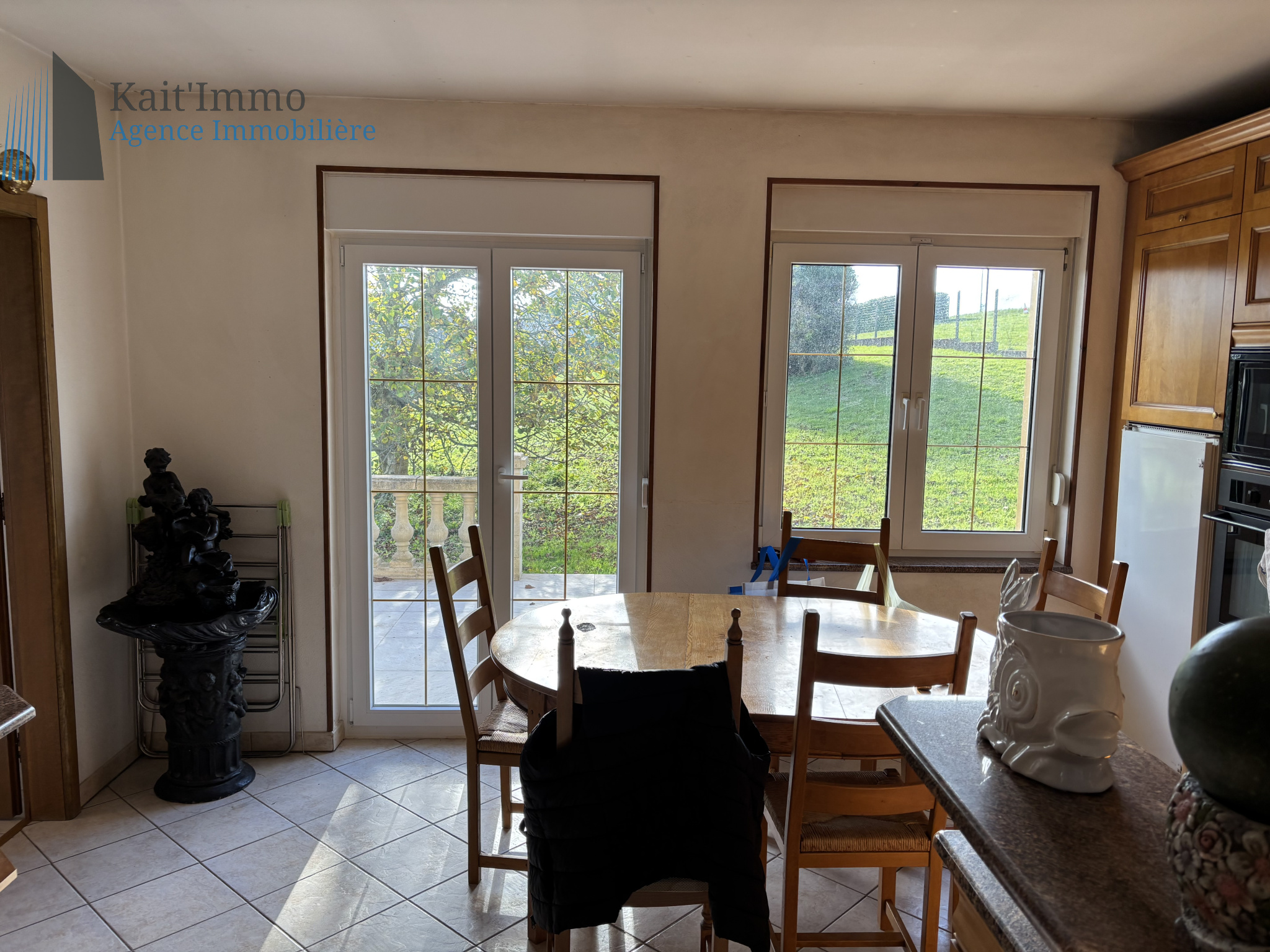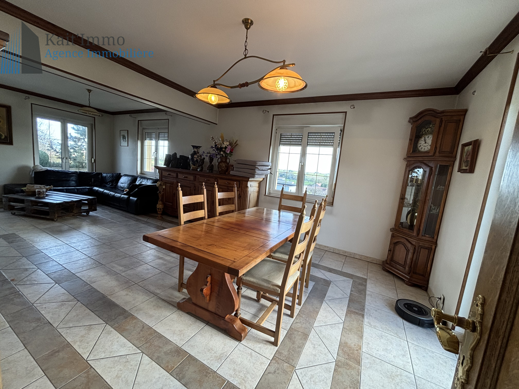 SOUS COMPROMIS !!! Découvrez cette magnifique propriété nichée au cœur d'une nature préservée à Kirsch-Lès-Sierck, à quelques pas du Luxembourg et des grands axes autoroutiers. Laissez-vous séduire par la vue imprenable depuis cette maison au charme traditionnel, offrant tranquillité et intimité grâce à son absence de voisinage proche. Implantée sur un vaste terrain de 28 ares 68, cette demeure spacieuse de 170 m² dispose également d'un sous-sol de 118 m², idéal pour accueillir plusieurs véhicules. Au rez-de-chaussée, vous trouverez un lumineux salon-salle à manger avec de grandes fenêtres donnant sur le splendide jardin, une cuisine équipée séparée avec accès à une terrasse accueillante, ainsi qu'une chambre, un bureau et une salle de douche. À l'étage, trois chambres confortables, une salle d'eau et deux greniers vous attendent. Les fenêtres à double vitrage garantissent un confort optimal, et le terrain de plus de 2800 m² vous offre une sensation d'espace inégalée. Vous profiterez également de deux grands garages avec espace de stockage et d'une vaste cave à vin. Les dépenses annuelles d'énergie pour un usage standard varient entre 3.010 € et 4.130 € (prix de l'année 2022). Pour plus d'informations sur les risques liés à ce bien, consultez le site Géorisque : www.georisques.gouv.fr Le prix de cette propriété est fixé à 520 000 euros, les honoraires étant à la charge du vendeur. Pour planifier une visite, contactez dès maintenant Valérie au 06.61.26.78.24 de votre agence KAIT'IMMO. Discover this stunning property nestled in the heart of unspoiled nature in Kirsch-Lès-Sierck, just steps away from Luxembourg and major highways. Let yourself be charmed by the breathtaking view from this traditionally built home, offering tranquility and privacy with no close neighbors. Set on a large plot of 28 ares 68, this spacious 170 m² home also features a 118 m² basement, perfect for accommodating multiple vehicles. On the ground floor, you will find a bright living-dining room with large windows overlooking the beautiful garden, a separate equipped kitchen with access to a welcoming terrace, as well as a bedroom, an office, and a shower room. Upstairs, three comfortable bedrooms, a bathroom, and two attics await you. Double-glazed windows ensure optimal comfort, and the plot of over 2800 m² provides an unparalleled sense of space. You will also enjoy two large garages with storage space and a vast wine cellar. Annual energy costs for standard use range between €3,010 and €4,130 (2022 prices). For more information on the risks associated with this property, please visit the Géorisque website: www.georisques.gouv.fr The price of this property is set at €520,000, with fees payable by the seller. To schedule a visit, please contact Valérie at 06.61.26.78.24 from your agency KAIT'IMMO.