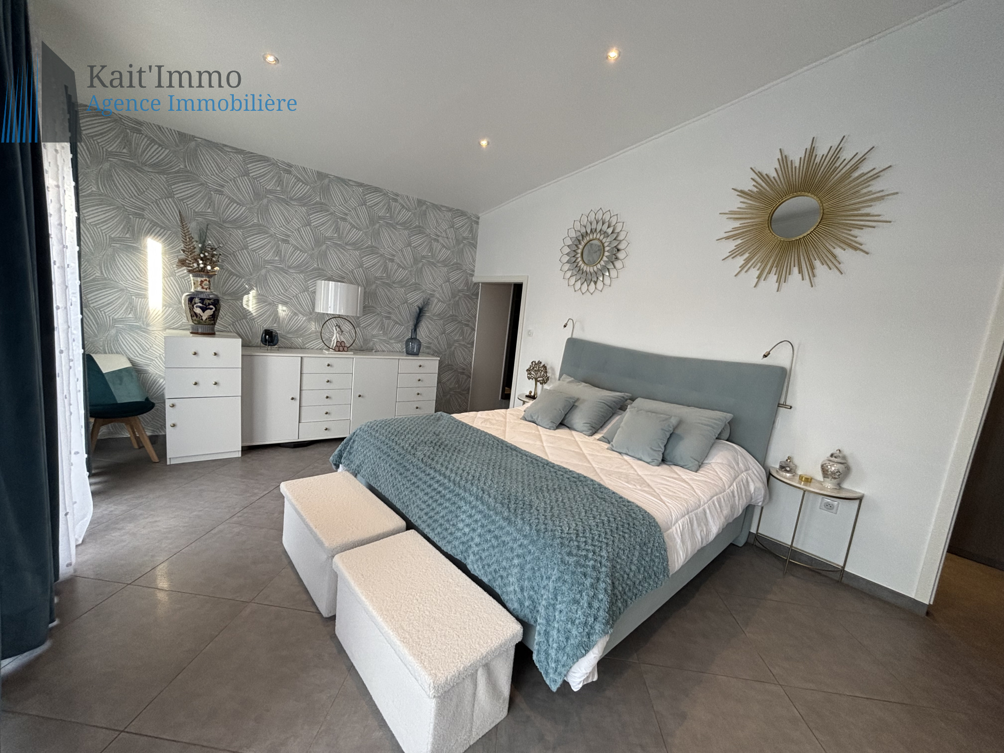 Découvrez cette belle maison, spacieuse de 221m2, sur une parcelle de 13a80, idéale pour une famille à la recherche de confort et d’espace. Cette propriété offre de très belles prestations et un cadre de vie agréable. Au rez-de-chaussée, vous profiterez d’un vaste salon- salle à manger lumineux de 60m², parfait pour recevoir famille et amis. La cuisine équipée, moderne et fonctionnelle, ravira les amateurs de gastronomie. Une grande buanderie vient compléter les espaces pratiques de la maison. Côté nuit, la maison dispose de trois chambres, dont une superbe suite parentale de 30 m2 avec salle de bain privative au rez de chaussée. Deux salles de bain au total et des WC séparés assurent le confort de toute la famille. A l'étage, deux grandes chambres (16 et 30 m2) dont une donnant accès à une terrasse. À l’extérieur, un terrain constructible de 600m² vous permettra d’envisager de nouveaux projets ou de profiter d’un grand jardin. Un double garage facilite le stationnement et le rangement. Le chauffage par pompe à chaleur garantit une excellente performance énergétique (classe A), pour un confort optimal et des économies d’énergie. Son Prix : 740 000 €, honoraires à la charge du vendeur. DPE - Classe énergétique : A GES : A Dossier de diagnostic technique disponible sur demande. Pour tout renseignement, merci de contacter Valérie au 06.61.26.78.24 Les informations sur les risques auxquels ce bien est exposé sont disponibles sur le site Géorisques : www.georisques.gouv.fr -